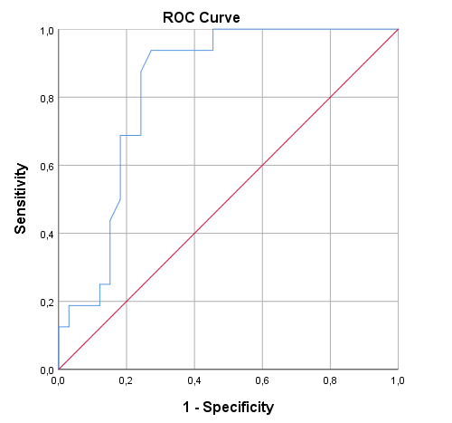 Results: During this period, 124 ARFI evaluations and 78 biopsies were performed in 54 patients. Three patients were excluded because of postoperative complications (5 evaluations). A high dispersion in ARFI values was recorded in the first three months in both groups: non-rejection group (n=88, 1.52±0.68 m/s) and rejection group (n=31, 1.55±0.46 m/s), which was attributed to the influence of postoperative factors and therefore these ARFI values were excluded from the analysis. After the first 3 months, the median ARFI values in the non-rejection group decreased to 0.98±0.32 m/s (n=55), which is similar to values reported in the native pancreas, whereas in the rejection group they reached a value of 1.45±0.31 m/s (n=16). This difference was found out to be statistically significant (p-value 0.0001). A cut-off value of 1.24 cm/s demonstrated a sensitivity and a specificity of 0.94 and 0.73 respectively (AUC 0.83) for the diagnosis of rejection in grafts older than 3 months.