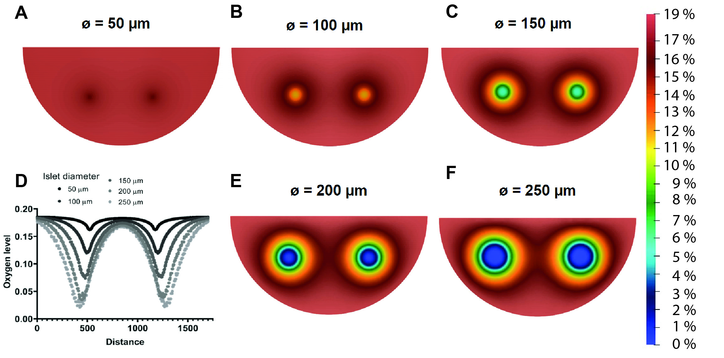 Discussion: This work highlights the importance of islet diameter on islet survival and functionality. The microwells within the macroencapsulation device have a clear benefit, distancing islets from one another and preventing aggregation. Moreover, there is a fine tradeoff between a high packing density and minimal implant dimensions, and a relatively low packing density leading to implant dimensions that are unfeasible in the clinic. The in silico local oxygen level predictions seem to overlap with in vitro oxygen imaging results. The model was therefore extrapolated, allowing the evaluation of several implant downsizing strategies.